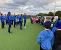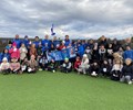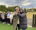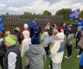Í upphafi dags komu hlaupagarpar í heimsókn til 4. bekkjar á vegum Friðarhlaupsins. Eins og segir á vefsíðu verkefnisins er Friðarhlaupið (Sri Chinmoy Oneness-Home Peace Run) alþjóðlegt kyndilboðhlaup sem er vettvangur fyrir einstaklinga til að leggja rækt við drauminn um frið. Um allan heim hafa ungir sem aldnir tekið logandi friðarkyndilinn í hönd og stigið skref í þágu friðar. Friðarhlaupið sameinar fólk af ólíku þjóðerni og menningu í þeirri hugsjón að hver og einn getur lagt sitt af mörkum fyrir frið. Hópurinn samanstóð af fólki víðs vegar að úr heiminum. Krakkarnir fengu að giska á þjóðerni þeirra, hlustuðu á boðskap þeirra í töluðu máli, söng og tjáningu, hlupu svo með þeim með friðarkyndilinn nokkra hringi á fótboltavellinum og létu hann síðan ganga á milli sín og senda með honum fallegar hugsanir. Skólinn fékk fallega mynd og viðurkenningarskjal að gjöf. Krakkarni okkar voru afar áhugasamir og sýndu gestunum háttvísi og vinalegt viðmót.