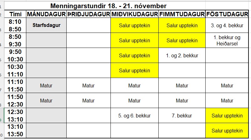 Forráðamenn eru hjartanlega velkomnir og má sjá tímasetningar hér að neðan.