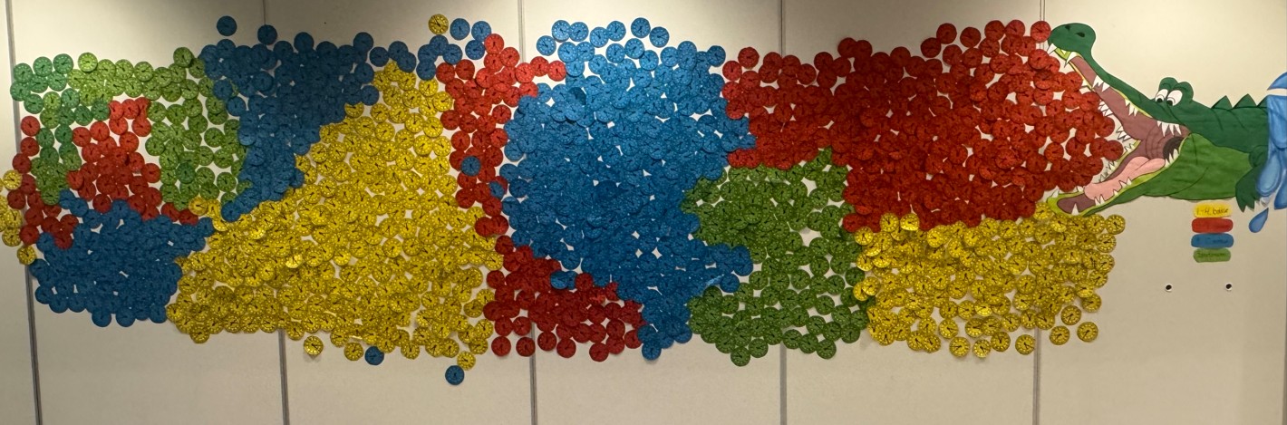 Krókódíllinn hafði aðsetur í matsal skólans og varð fljótt tákn fyrir samstöðu og jákvæða keppni. Fyrir hverjar 60 mínútur í lestri fengu nemendur og starfsmenn klukku sem hengd var upp í matsalnum. Klukkurnar voru litamerktar eftir stigum: