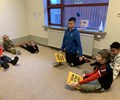 Í vetur hefur 5. bekkur farið og lesið fyrir leikskólabörn á Heiðarsel og Garðasel og hefur það vakið mikla kátínu bæði hjá nemendum í 5. bekk sem og hjá leikskólabörnunum. 5. bekkur hefur staðið sig einstaklega í vel í upplestrinum og leikskólabörnin staðið sig mjög vel að hlusta.